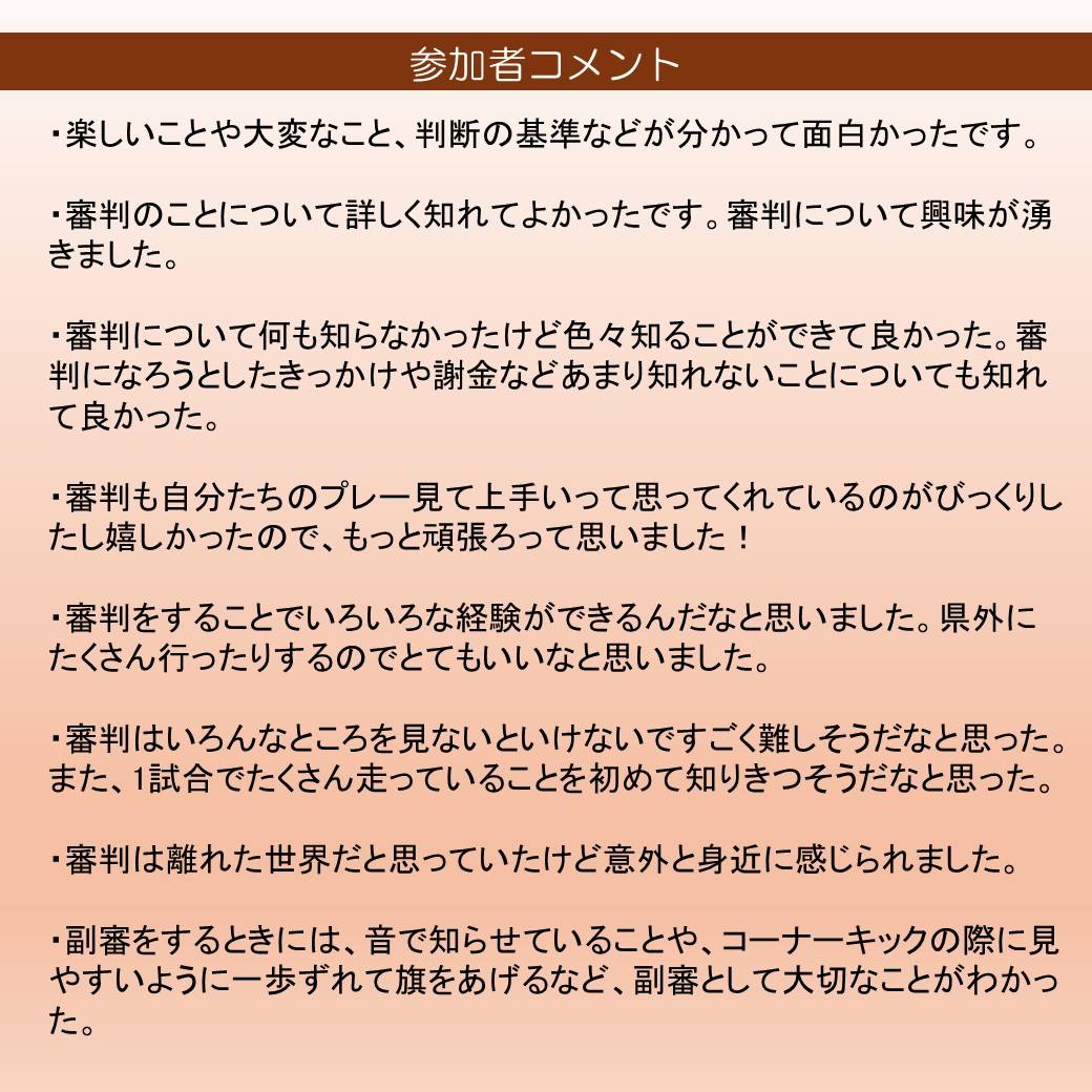長崎県サッカー協会では、今後も審判員の育成および資質向上を目的とした研修機会の充実に努めてまいります。