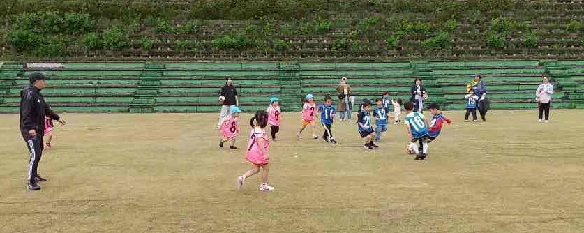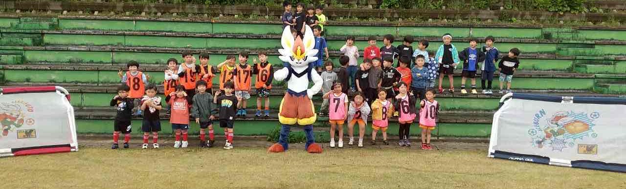 令和8年4月26日(日)に、松浦市の『不老山公園芝生広場』において標記フェスティバルが開催されました⚽ 今回は、年中さんから小学1年生までの子どもたちがサッカーのゲームを楽しみました⚽ 小雨が降る中、決して良いコンディションではありませんでしたが、みんな一生懸命にプレーしました⚽ ポケモンのエースバーンも子どもたちの応援に駆けつけてくれました!! 不老山公園の完全復活を後押しする子どもたちの頑張りは、本当に頼もしく素晴らしいものでした